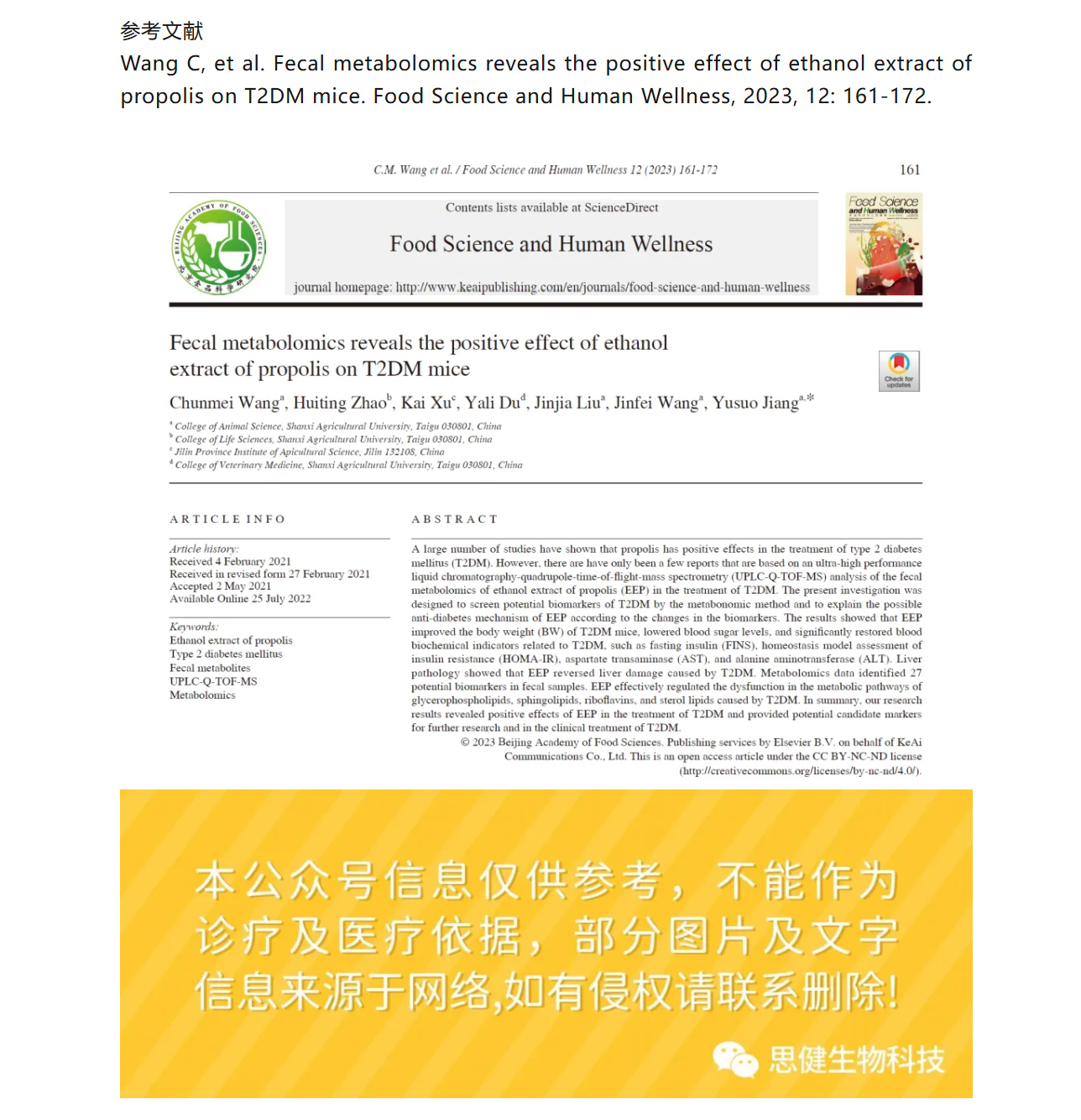 【科研速遞】蜂膠乙醇提取物如何“修復(fù)”糖尿???糞便代謝組學(xué)揭開關(guān)鍵機(jī)制!